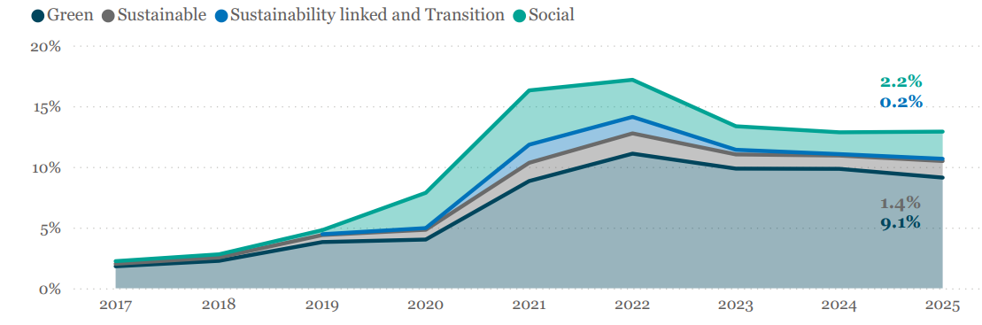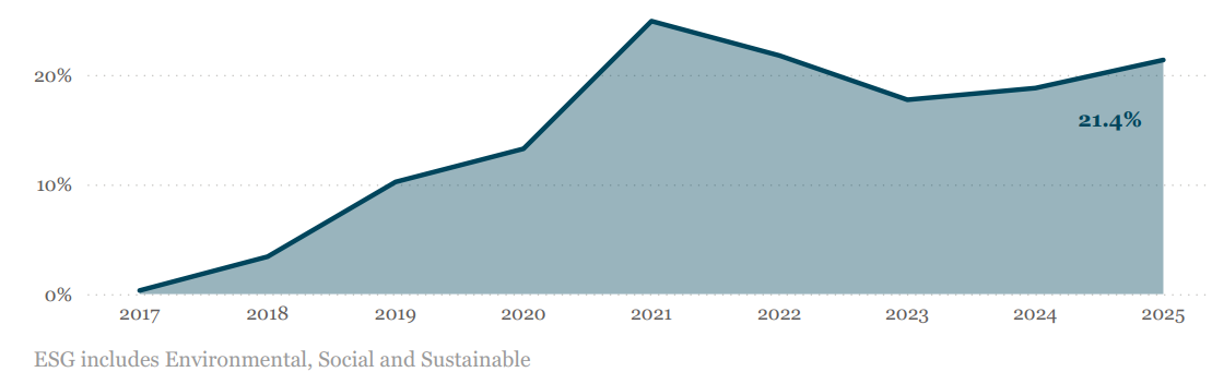 European Sustainability Linked and Green Loans Issuance as % of Syndicated